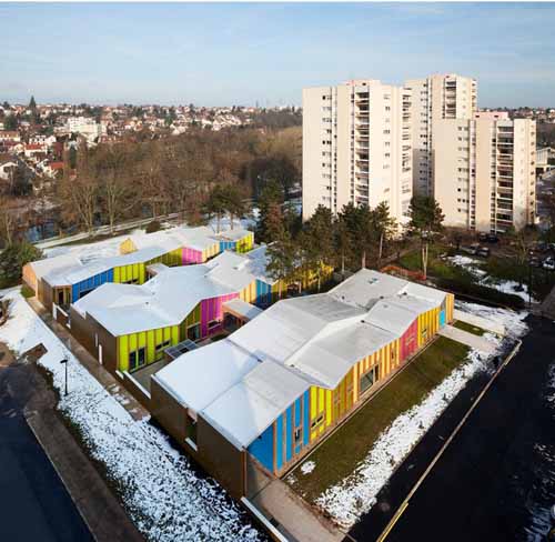 Epinay幼兒園在法國巴黎附近一個名叫埃皮奈蘇塞納爾的小鎮(zhèn),幼兒園附近坐落的都是上世紀七十年代的經典建筑......