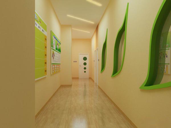 地面至1.2米處也可鑲貼瓷片,一是方便清潔,二可以增添幼兒園特色的氛圍,還可以掛上一些可供幼兒寫(xiě)畫(huà)的小黑板,便于幼兒表現(xiàn)自我、抒發(fā)內(nèi)心感受。裝飾墻面的材料顏色要淡雅、明快,要考慮環(huán)境的功能性以及采光情況。可用貼或刷的方法,裝飾出大塊的抽象圖案。幼兒園設(shè)計(jì)整體色彩既要注意統(tǒng)一,又要強(qiáng)調(diào)變化,體現(xiàn)幼兒園特點(diǎn)。