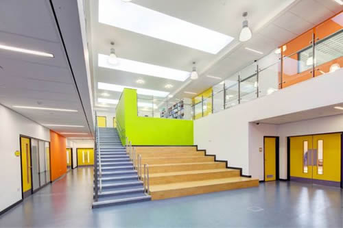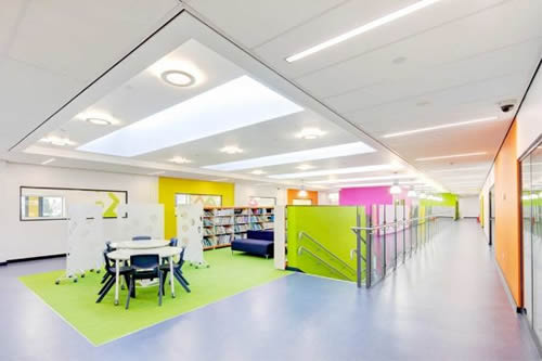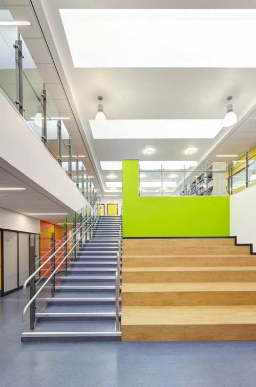 中央學(xué)習(xí)空間自然采光,通過一排排的北向窗戶進(jìn)行通風(fēng),這些窗戶與建筑管理系統(tǒng)融為一體,以確保創(chuàng)造一個舒適的學(xué)習(xí)環(huán)境,同時減少生命周期成本。廣場為學(xué)生和來訪者提供了清晰、明確的方向?qū)б?,由于空間開放,布局暢通,因此有助于減少欺凌弱小的行為發(fā)生。
