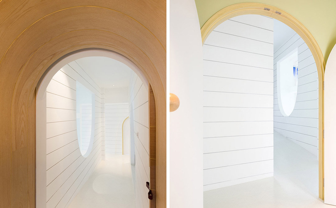 跑、爬、藏、懸掛、甚至下落等身體活動在日常生活中并不常見。Onion將1940年上映的美國動畫片“貓和老鼠”作為該項目室內設計的參照標桿。如果Jerry為自己修建房子的話,很有可能會是一個巨大的奶酪房,里面設有幫助自己躲避Tom追趕的“莫比烏斯圈”逃跑路線。建筑師將該住宅設計成一個深受孩子們喜愛的樂園,讓全家在七巖海灘的假期更有意義。