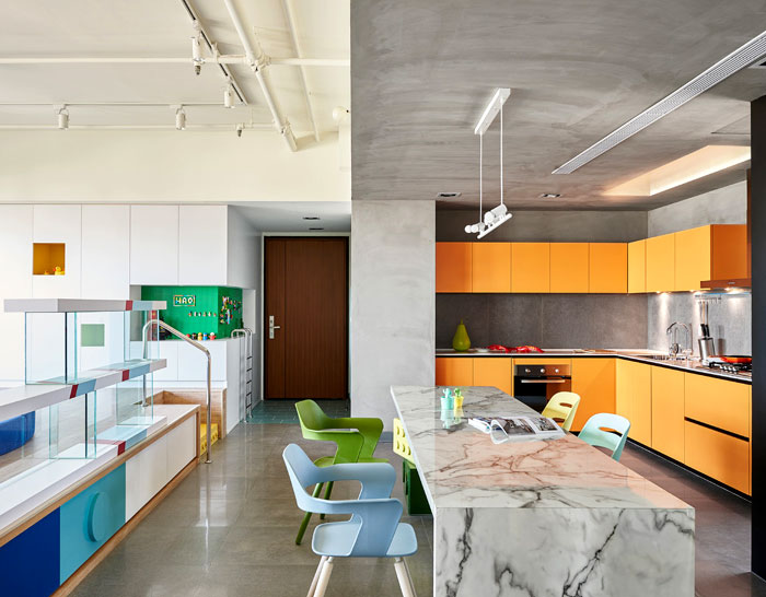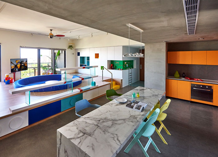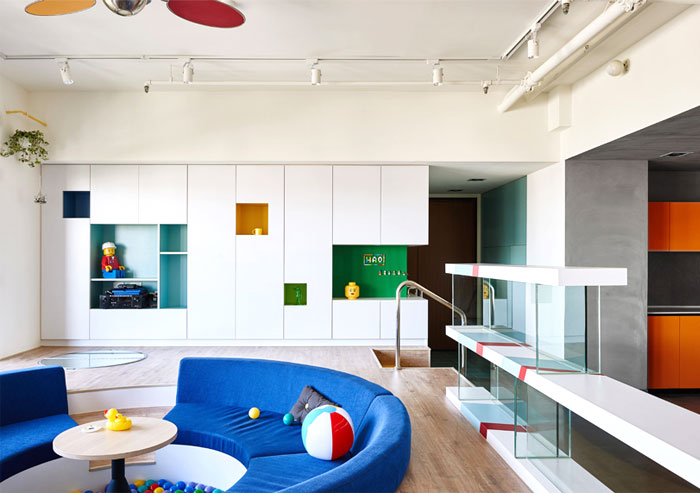 這是位于臺(tái)灣高雄的一座公寓,年輕的屋主希望將原先的公寓改造,作為樂高發(fā)燒友,他們希望新的設(shè)計(jì)可以融入樂高的元素,不僅滿足了自己的喜好,也讓家中的小朋友有娛樂的空間。