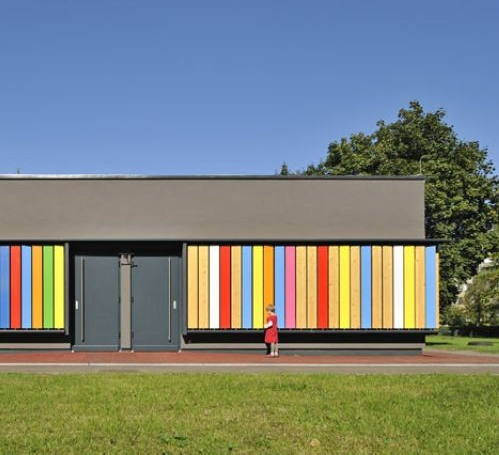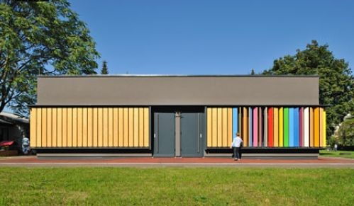 這棟會變色的建筑時而顏色鮮艷,時而相貌平平,其中奧秘在于一面木制外墻。