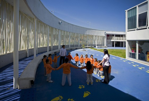 在哥倫比亞號稱美麗和邪惡并存的城市,首都波哥大有一家非常有特點的幼兒園,為埃爾波韋尼爾的幼兒園,這個幼兒園占地兩千一百平方米,由多個模板機構(gòu)組成的,幼兒園設(shè)有五個單元,如多功能室、兒童俱樂部、廚房和就餐區(qū)等布局非常自然隨意,但是卻能以一個流通路徑相互連接到一起。