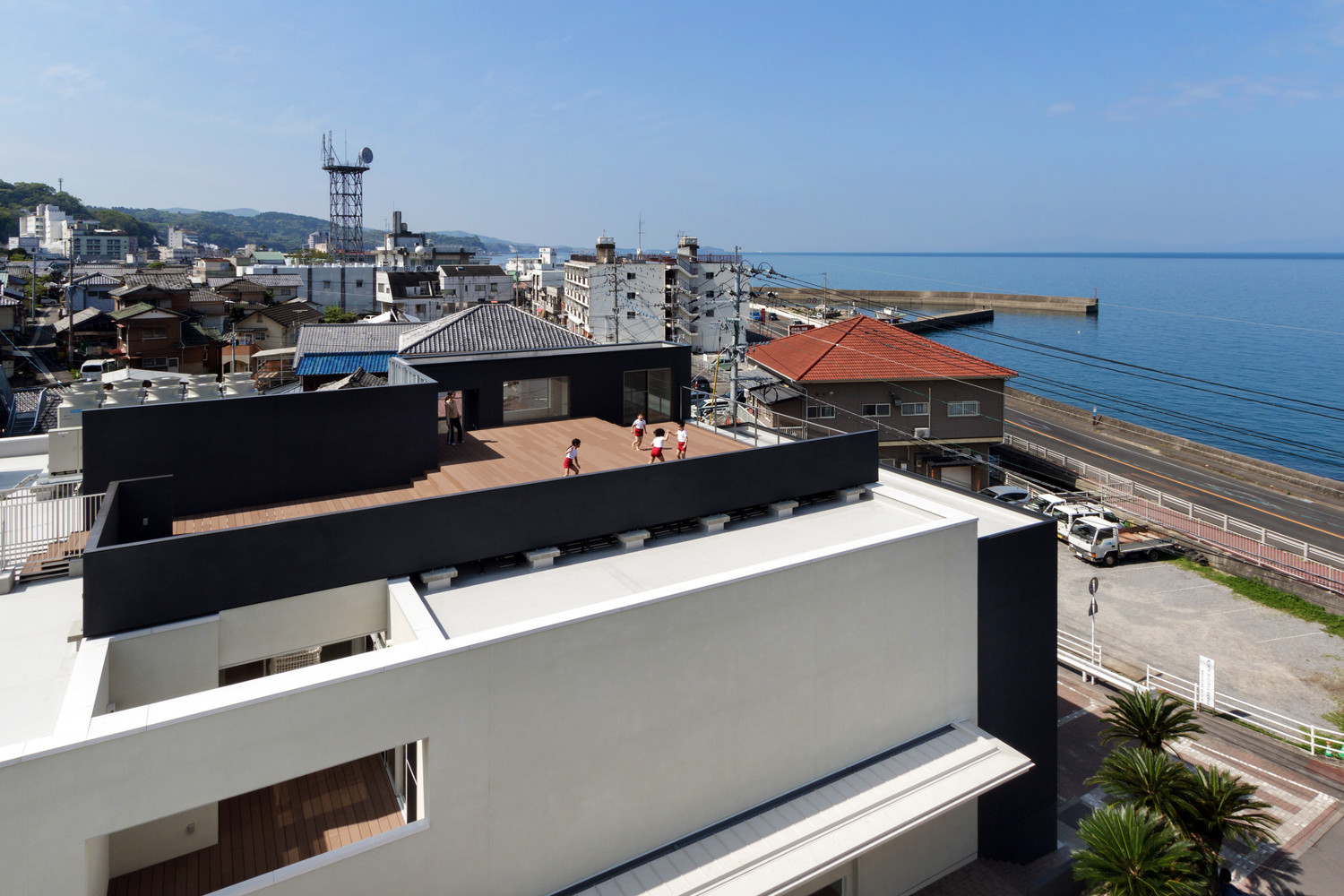 在日本長(zhǎng)崎縣有一所幼兒園,就像海子的詩(shī)(面朝大海春暖花開)一樣,是一座面朝大海的建筑,這個(gè)幼兒園建于里亞式海岸旁。一望無際的海面向南方蔓延,在幼兒園樓頂上看向大海的南方有座山,這是一座能使人們感受到大自然神奇的創(chuàng)造力秀麗山峰。幼兒園的建筑高12m,室內(nèi)寬敞明亮設(shè)計(jì)師充分利用臺(tái)階的優(yōu)勢(shì),解決兒童因身高限制而無法觸到和看到的高度問題。該建筑布局和流程圖是根據(jù)交通和兒童保育計(jì)劃特別設(shè)計(jì)的。