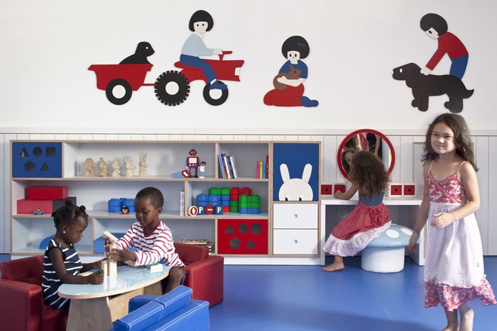 拉馬特甘幼兒園位于以色列占地為一百平方米,在幼兒園周圍是廣闊中滿青菜的菜地,幼兒園設(shè)計(jì)有兩個(gè)教室,分為一歲半和兩歲半的小班和兩歲半到三歲半的大班,幼兒園的設(shè)計(jì)非常的簡潔,精心去選擇顏色和木質(zhì)的家具成功搭配結(jié)合在一起,還有很多柔軟的手工設(shè)計(jì)添加在其中,可以激勵(lì)孩子們揮發(fā)自己的想象力,種種有針對(duì)性的舉措是的幼兒園形成親密獨(dú)特的氛圍。