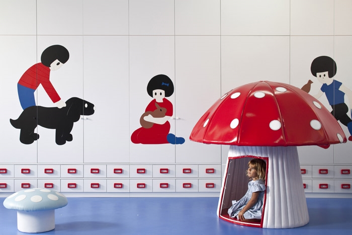 在堅(jiān)持富有想象力的創(chuàng)意設(shè)計(jì)時(shí),同時(shí)全面考慮使用對(duì)象,材料方面使用經(jīng)濟(jì)型的PVC地板以及人造革材料,家具方面則是高度符合兒童人體工程學(xué),可以方便去拿玩具,而且還具體的設(shè)了有病床、蘑菇、房子、廚房、烤箱等等大玩具,可以讓孩子們?cè)诶锩孢^足扮家家的癮,每一個(gè)細(xì)節(jié)都做了考慮,蘑菇、木房則可以讓孩子們藏在里面能讓孩子們能得到更多的體驗(yàn),發(fā)揮想象力。