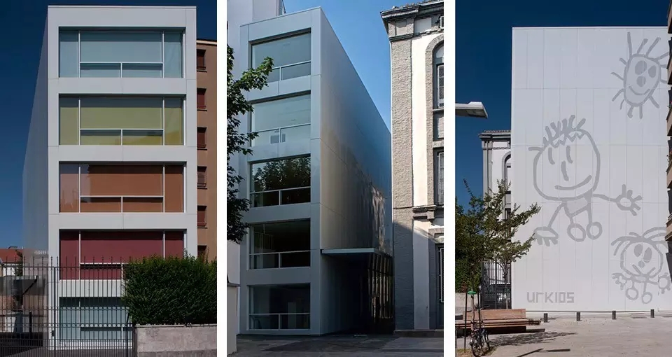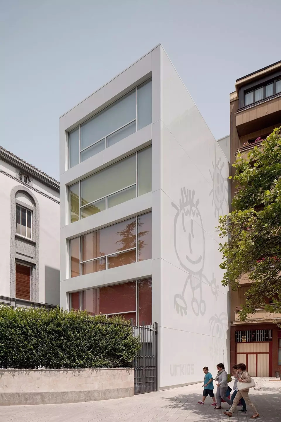 很多幼兒園都是占地面積廣闊,空間很大,但是有一所特別的幼兒園是特例,他就是UrKids幼兒學(xué)校,幼兒園是一棟白色五層高樓,就像是人們說(shuō)的紙片樓,而設(shè)計(jì)師們則是把入口建在了建筑的長(zhǎng)邊上。