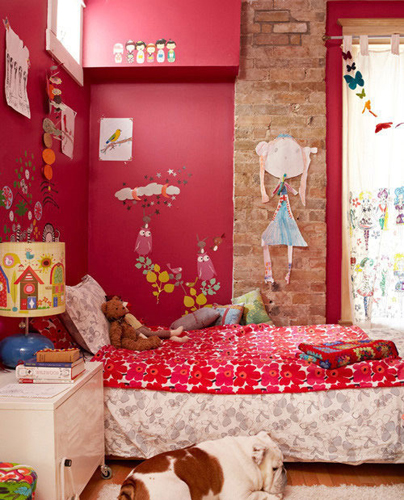 采用各種顏色的剪紙作為主題,以陳舊磚墻作為點(diǎn)綴,可以選擇玫瑰紅色的兒童房,這個(gè)風(fēng)格給人的印象就是熱情奔放,而以陳舊的磚墻則是可以中和色調(diào),能有效的保證孩子不會(huì)因?yàn)橐曈X上讓孩子的心情太過浮躁,而且在墻體上還可以貼一些可愛的墻貼,整個(gè)房間都從滿孩子喜好的元素,再配以艷麗的顏色會(huì)給予孩子很多的想象空間。(幼兒園設(shè)計(jì))