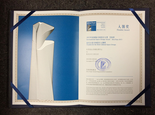 2015年,集合作品“深圳南山書(shū)城培訓(xùn)中心”獲艾特獎(jiǎng)年度文化空間設(shè)計(jì)獎(jiǎng)
