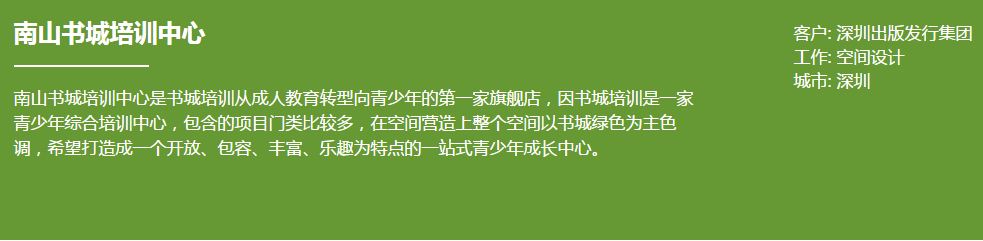 專注少兒空間設計八年,充滿愛心和創(chuàng)意的少兒空間設計是我們擅長做的事情.項目遍布全國,為學校、幼兒園、培訓機構、文化機構提供完整空間及平面設計解決方案,服務眾多著名品牌,是少兒相關項目設計的專業(yè)機構。公司服務內容包括:品牌咨詢、空間設計、平面設計、軟裝配飾、施工監(jiān)理。
