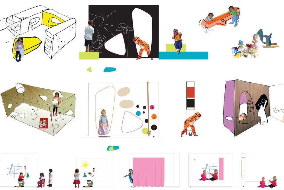 11、墻是這所幼兒園空間的核心設(shè)計元素。一般意義上,墻體只承擔(dān)分隔空間和隔音的作用,但這里被賦予了更豐富的功能?;蛘哒f,家具與墻的界限變得非常模糊。簡單的折疊和推拉墻面即可改變房間的大小,創(chuàng)造出容納新功能的空間。墻面采用不同的材質(zhì),擁有鮮艷的色彩,并且開設(shè)了許多形狀大小各不相同的洞口。